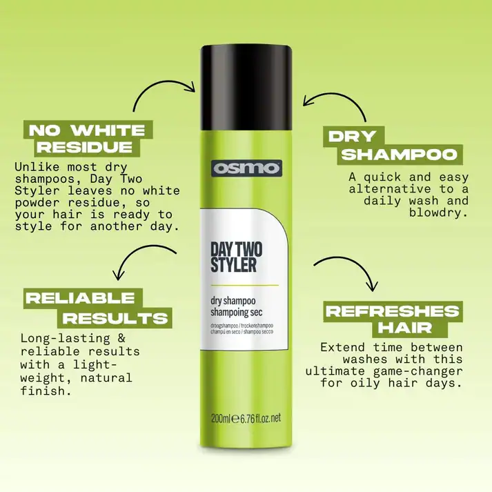 Osmo Day 2 Styler Dry Shampoo 200ml (Dry Shampoo) is a salon-grade shampoo. It cleanses effectively while helping maintain softness and manageability.